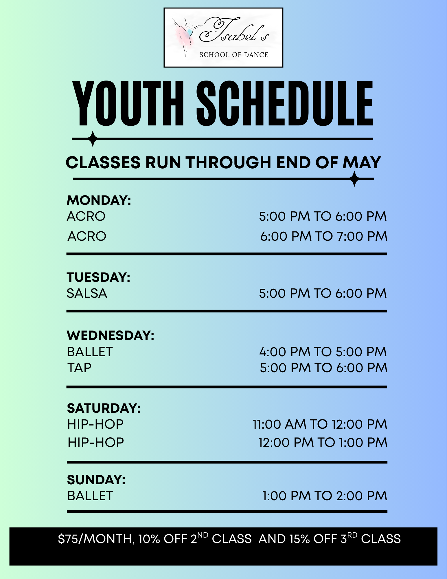 Create an account and schedule your $10 trial now by either calling Isabel at 917-656-1259 or clicking the link below. Schedule a Trial